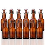 SureSave Beer Bottles with Easy Flip Top | 16 Oz Amber Glass Bottle Set with Airtight Cap for Kombucha, Carbonated Drinks, Brewing, and Fermenting (12 Pack)