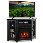 GOFLAME Corner Fireplace TV Stand with LED Lights for TVs up to 50”, Modern Entertainment Center with Electric Fireplace, Remote & Smart APP Control, TV Console with Adjustable Glass Shelves (Black)