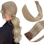 RUNATURE Real Human Hair Ponytail Extension 18 Inch Clip in Ponytail Hair Extensions Remy Hair Walnut Brown Highlight Ash Brown Fading to Light Blonde Balayage Ponytail Extension Human Hairpiece 80g…