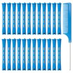 48 Pieces Hair Perm Rods Long Cold Wave Rods Plastic Perming Rods Curlers Hair Rollers with Rat Tail Comb for Hair Styling Tools(Gray,0.59 Inch)