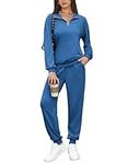 Aleumdr Womens 2 Piece Sweatsuit Sets 2024 Fall Trendy Half Zip Pullover Long Sleeve Sweatshirt Jogger Pants Outfits with Pockets Black Small